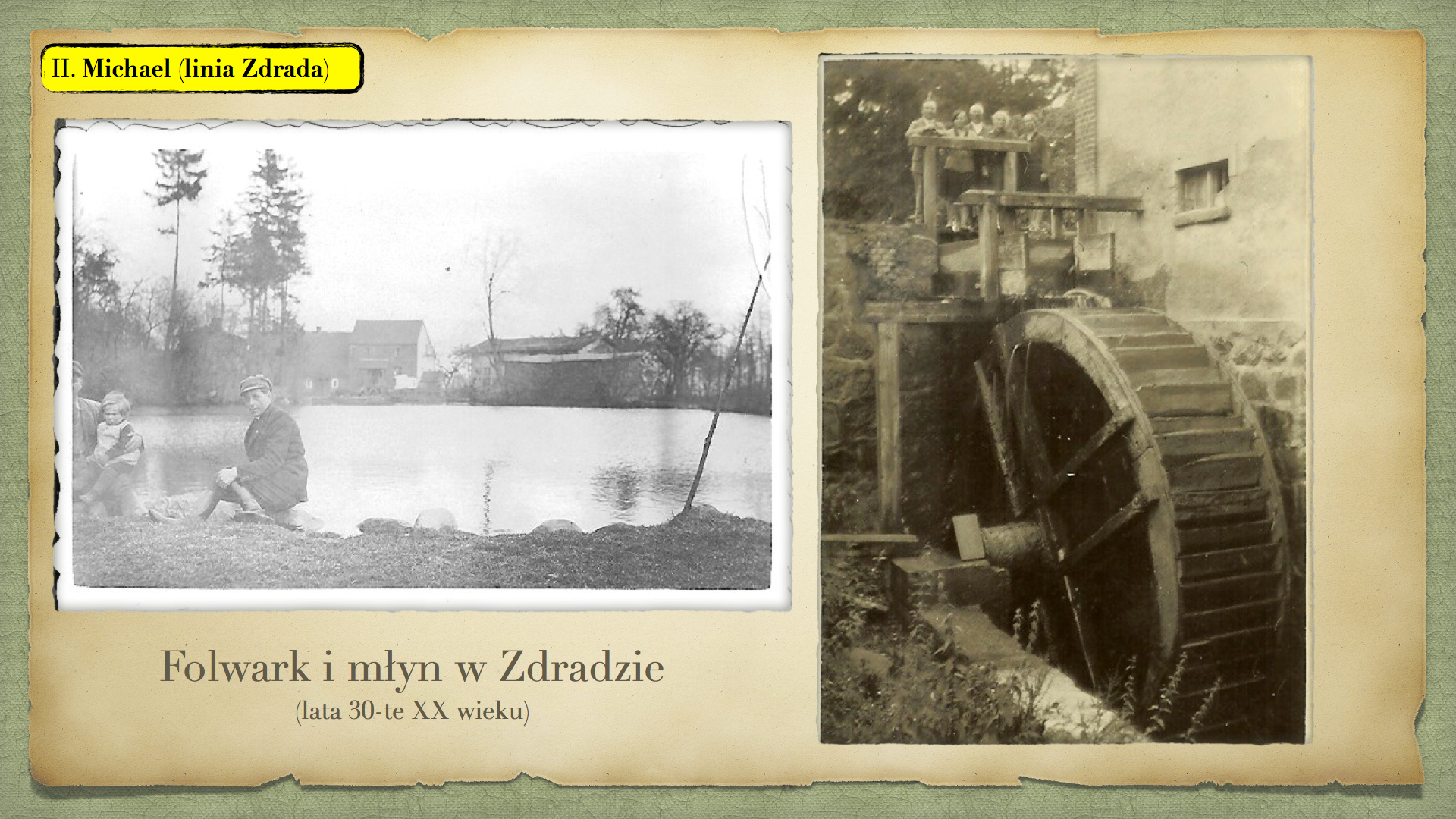 3. Linia zdradowa; tę linię zapoczątkował Michael, przejmując ojcowiznę (tak wynikałoby z zapisów notarialnych posiadłości w Mechauer Muhle). Był to pokaźny folwark z młynem wodnym, położony między Mechowem a Zdradą, później administracyjnie przynależny do miejscowości Zdrada. Właśnie w tej wsi urodził się działacz kaszubski Antoni Abraham (rodzice: Johann Abraham i Franciska Czapp) w dniu 19 listopada 1869 roku i według zapisu w księdze parafialnej Mechowy (W – 934) rodzicami chrzestnymi byli Michael Plinski i Anna Plinska – moi pradziadkowie.